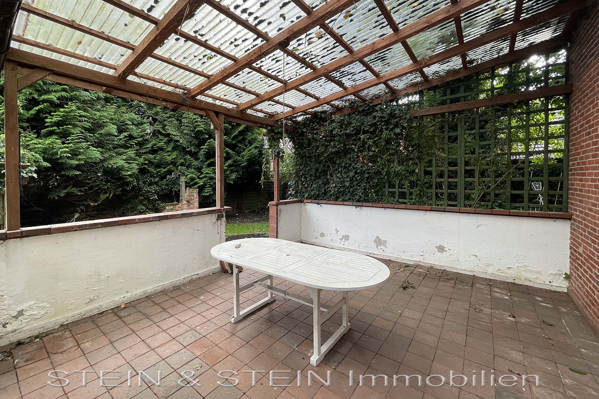 Der Garten ist in Südlage ausgerichtet und verfügt über alten Baumbestand und mehrere Ruhezonen.