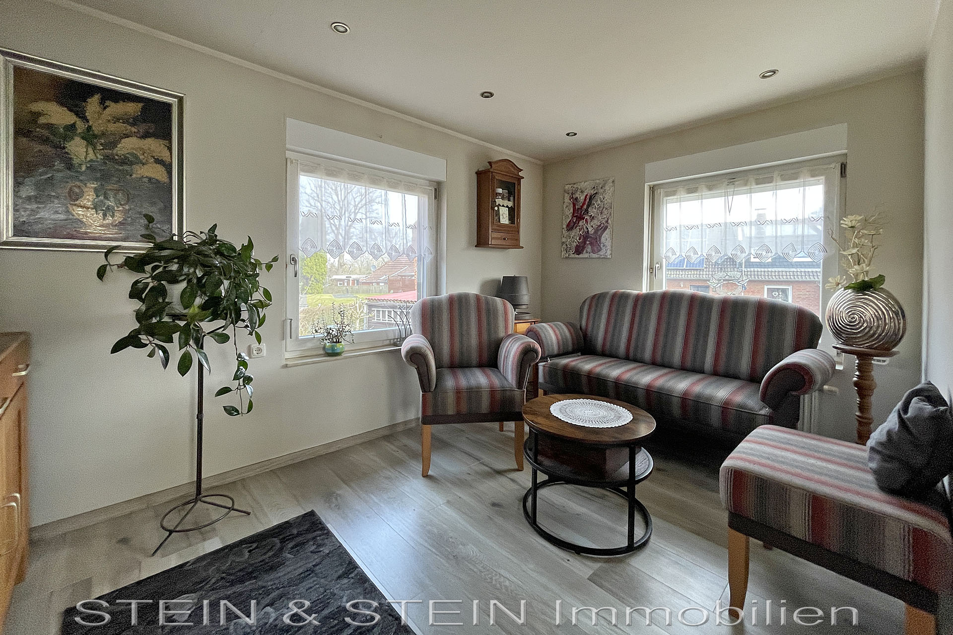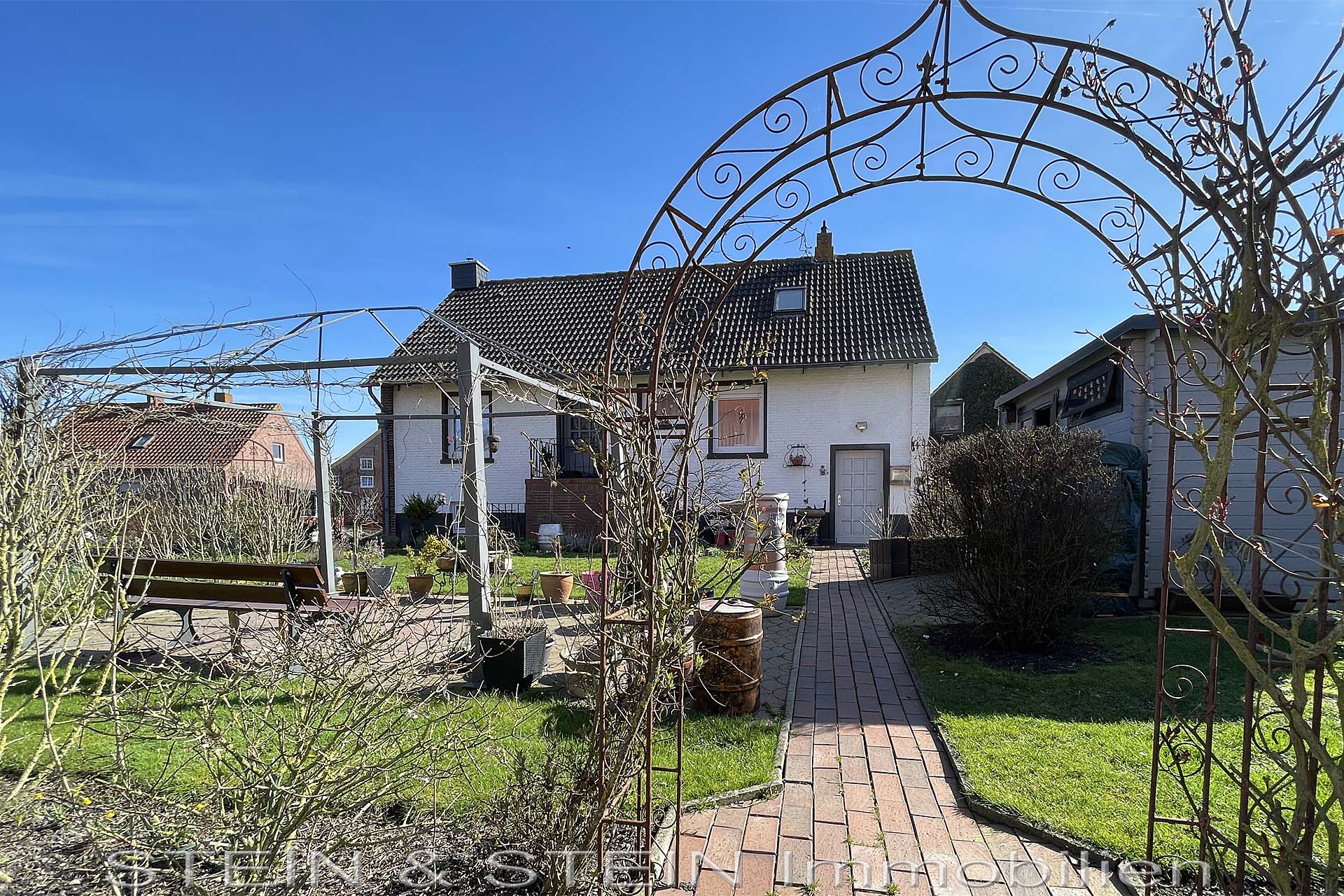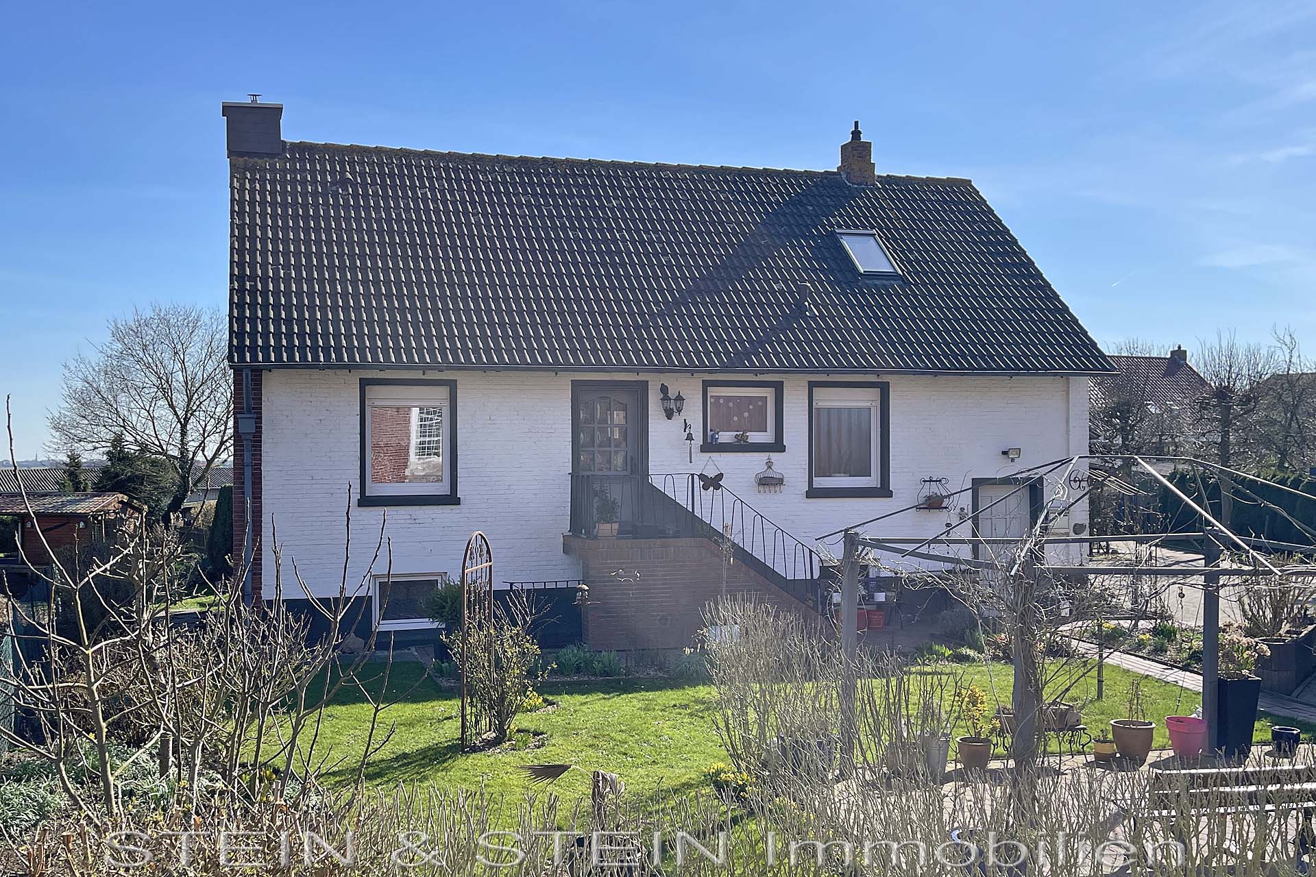 Die Garage und Stellplätze direkt vorm Haus sorgen für ausreichend Platz für Ihre PKW und im pflegeleicht angelegten Garten mit Terrasse können Sie die Ruhe genießen.
