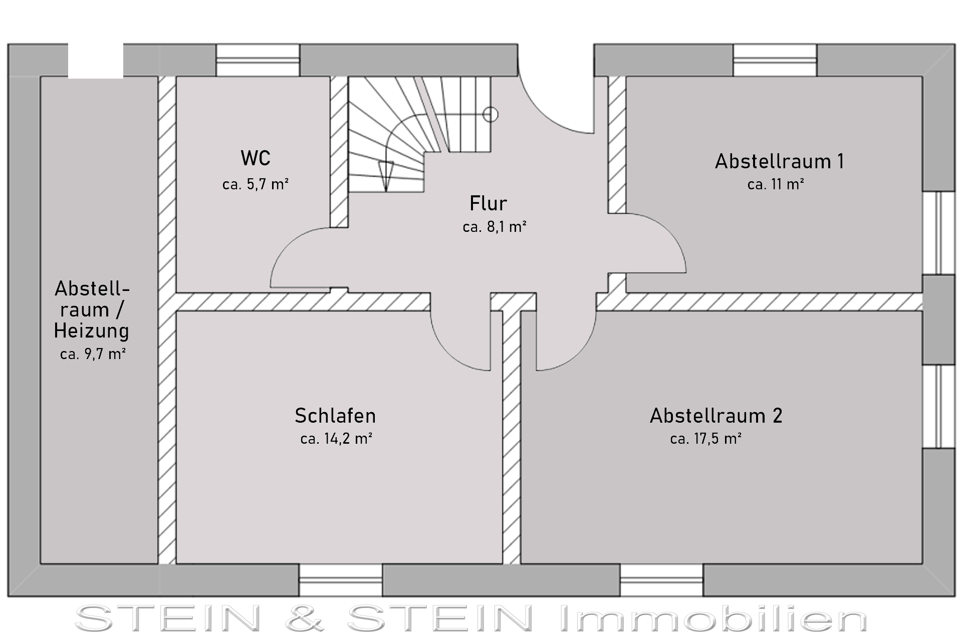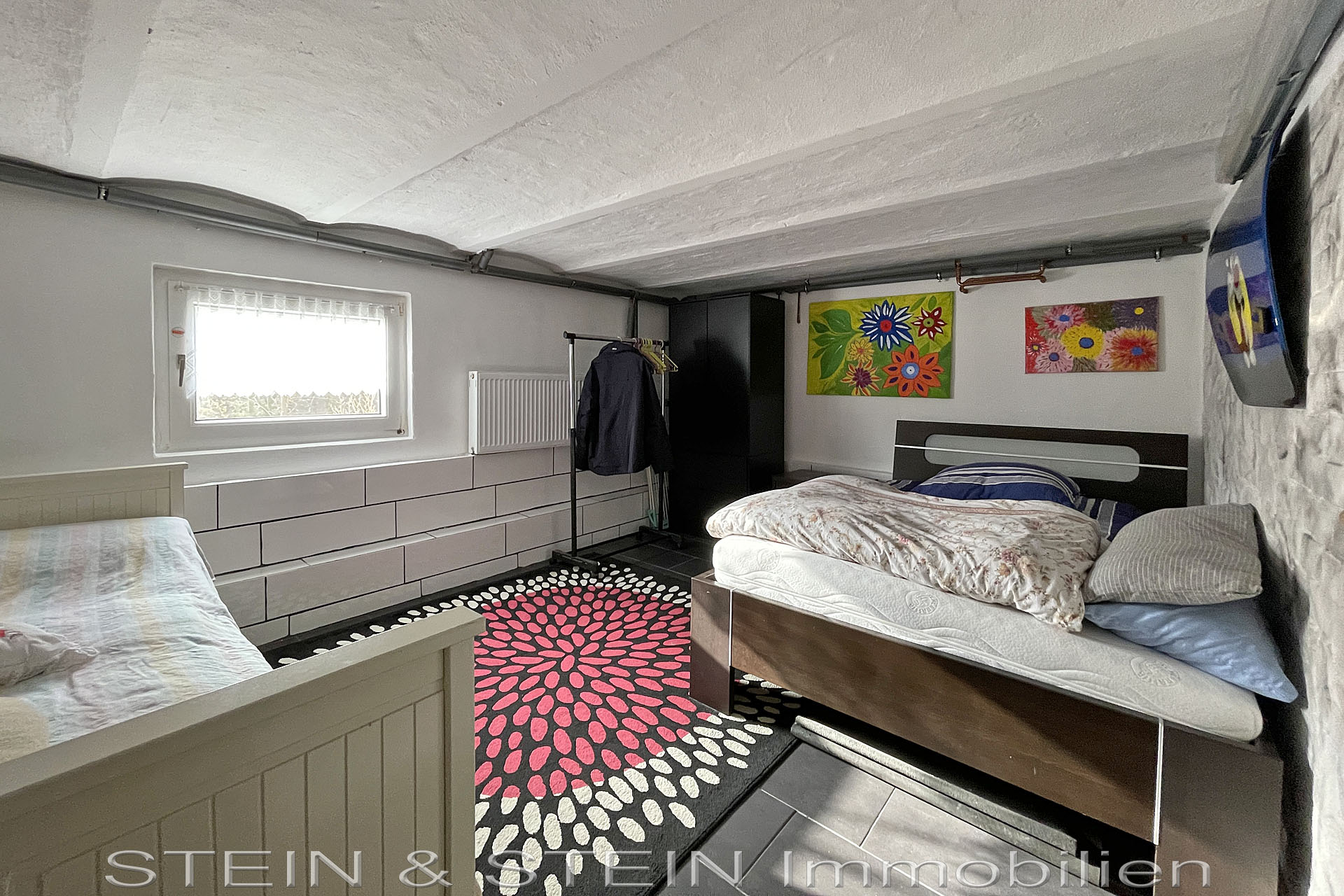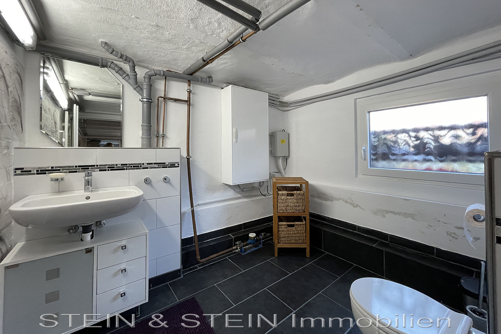 Die Keller-Etage (Souterrain) bietet ein weiteres Schlafzimmer, ein WC und drei Abstellräume.
