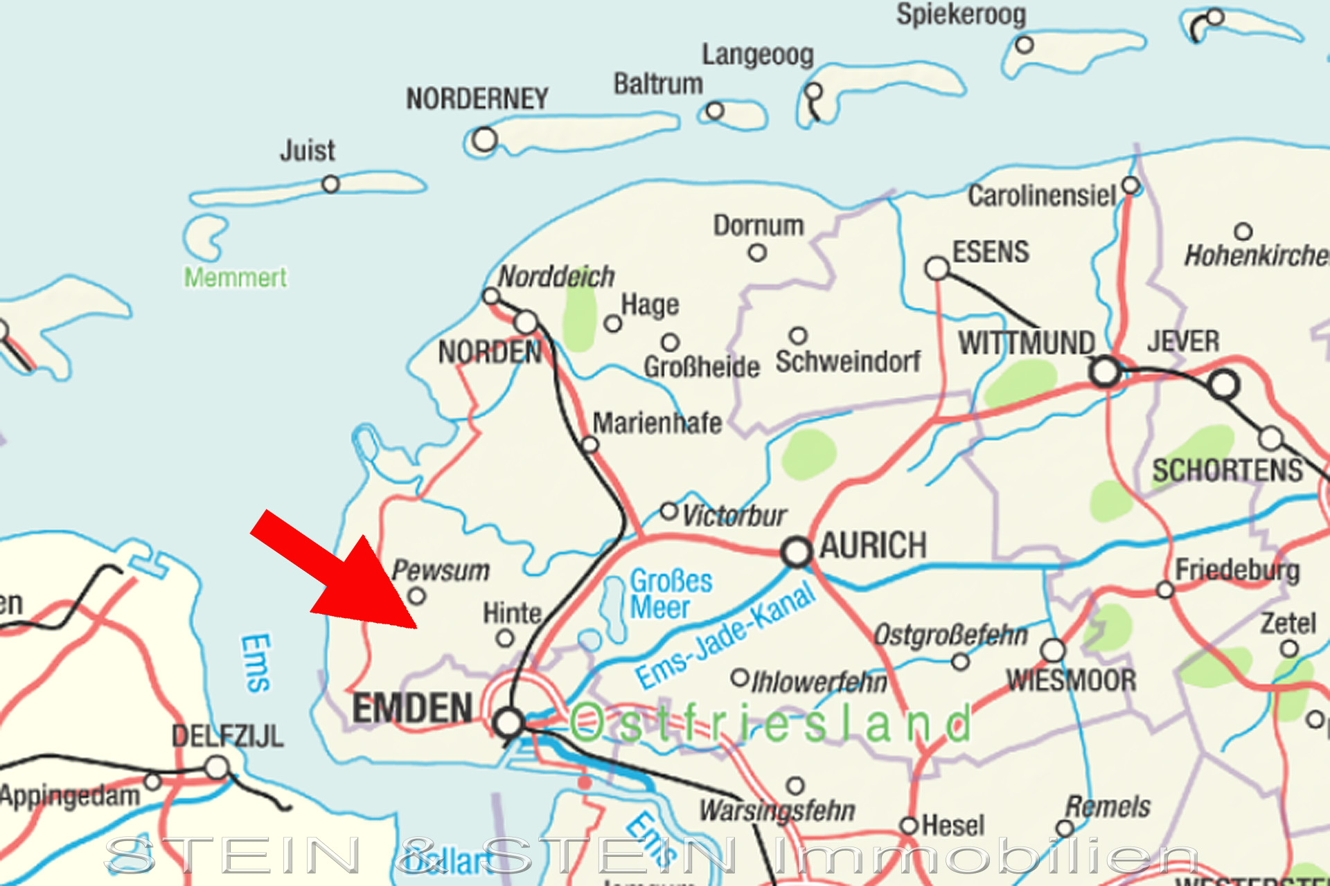 Nur etwa 10 km von Emden entfernt, verfügt Freepsum über eine hervorragende Verkehrsanbindung durch die Autobahn A31, sowie Bahnhof, Flugplatz und unzählige Wasserwege.